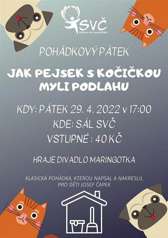 Rožnov p. R. 29. 4. 2022 od 17:00 POHÁDKOVÝ PÁTEK – JAK PEJSEK S KOČIČKOU MYLI PODLAHU