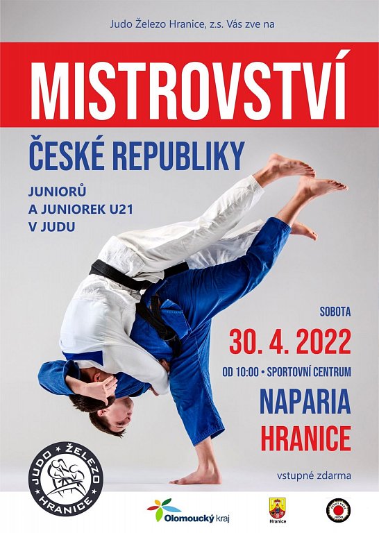 Hranice 30. 4. 2022 od 10:00 MISTROVSTVÍ ČR JUNIORŮ A JUNIOREK – JUDO