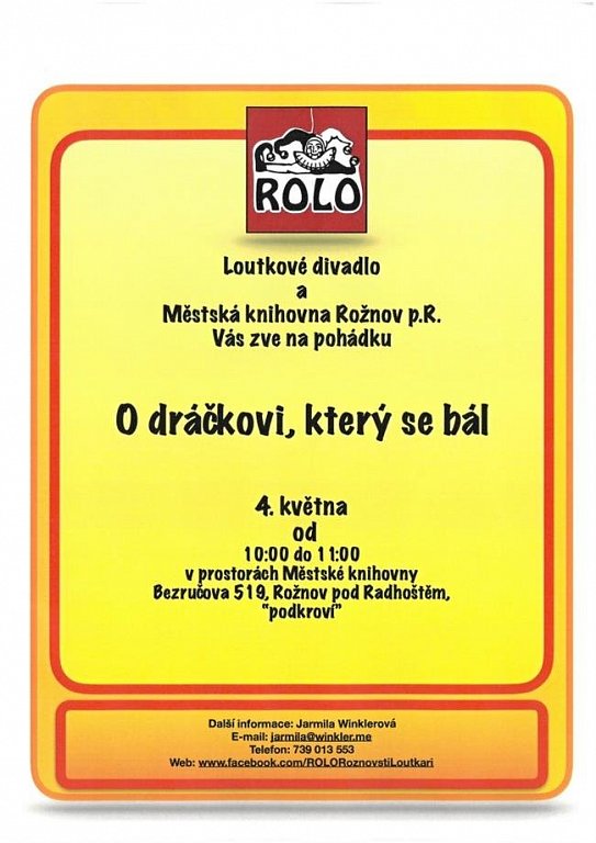 Rožnov pod Radhoštěm 4. 5. 2019 od 10:00 O DRÁČKOVI, KTERÝ SE BÁL