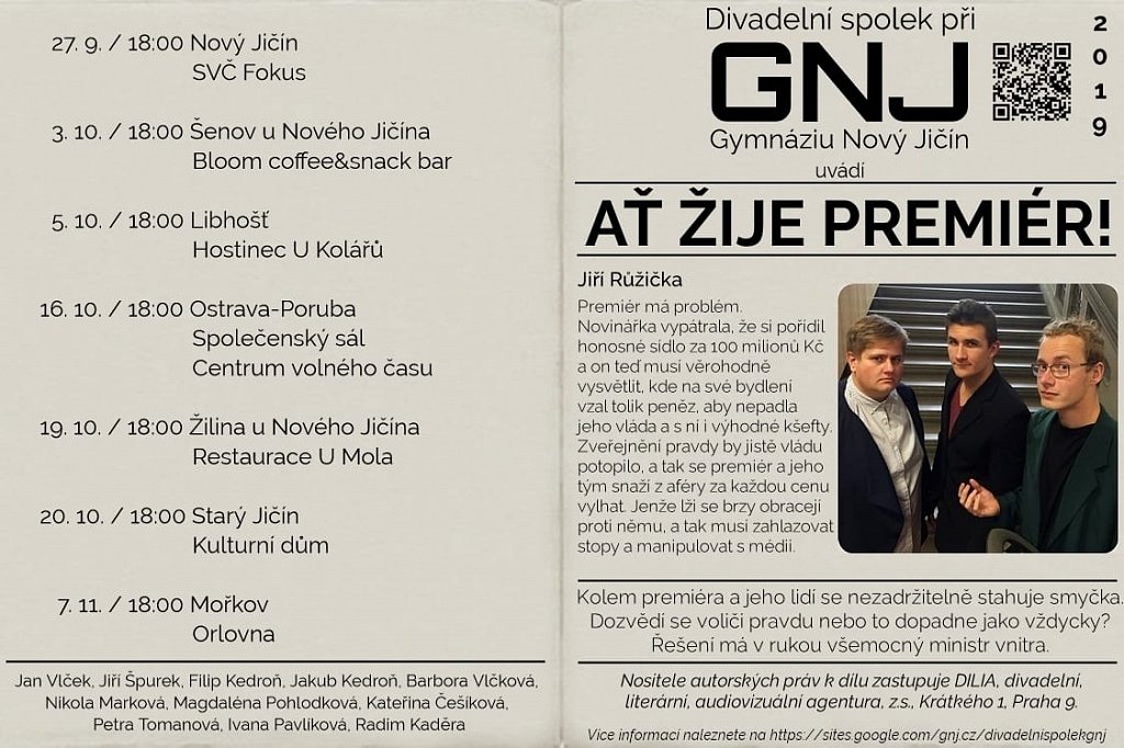 Libhošť 5. 10. 2019 od 18:00 DIVADELNÍ SPOLEK PŘI GNJ: AŤ ŽIJE PREMIÉR!