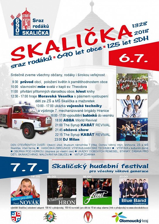 Hranice 6. 7. 2018 od 14:00 Skaličský hudební festival – sraz rodáků a oslavy 690 let obce