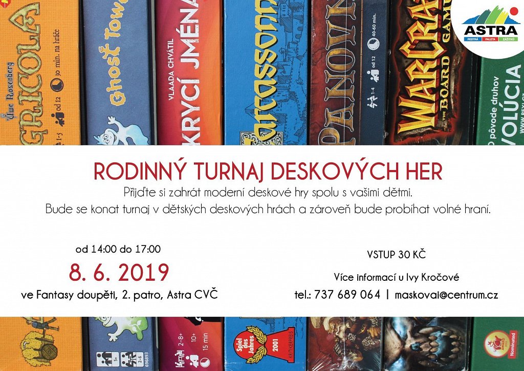 Frenštát pod Radhoštěm 8. 6. 2019 od 14:00 do 17:00 RODINNÝ TURNAJ DESKOVÝCH HER
