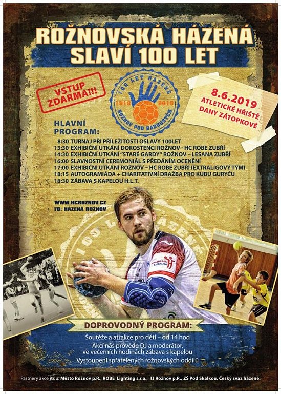 Rožnov pod Radhoštěm 8. 6. 2019 od 8:30 DO 18:30 ROŽNOVSKÁ HÁZENÁ SLAVÍ 100 LET