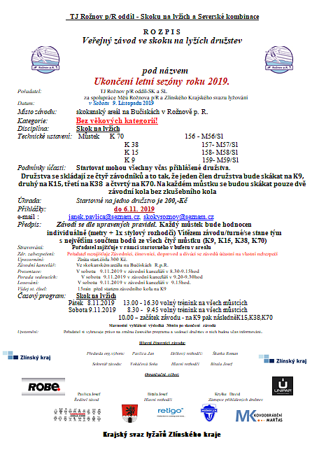 Rožnov pod Radhoštěm 9. 11. 2019 od 8:30 6. ROČNÍK ZÁVODŮ VE SKOKU NA LYŽÍCH „VEŘEJNÝ ZÁVOD DRUŽSTEV“