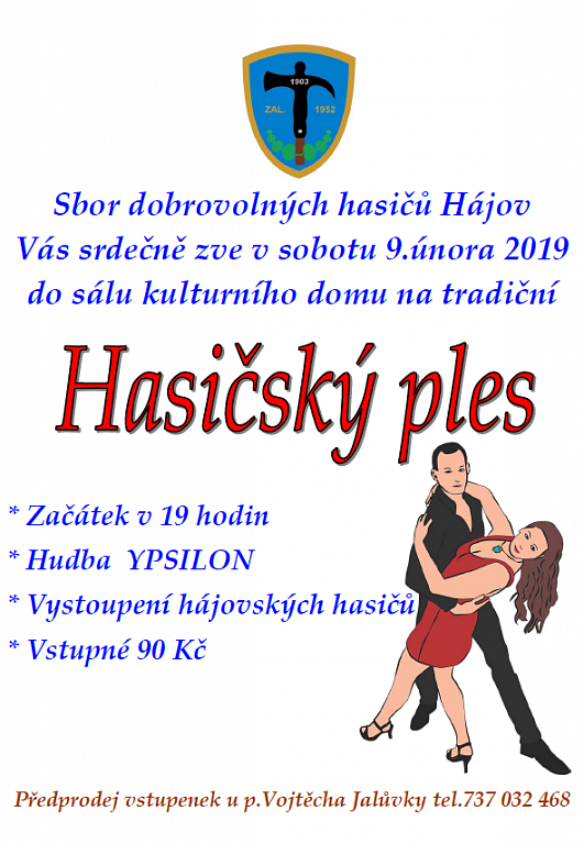 Hájov 9. 2. 2019 od 19:00 HASIČSKÝ PLES HÁJOV