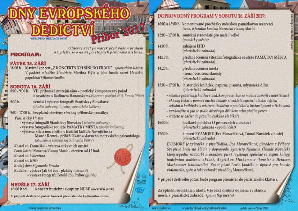 Příbor 15. 9. – 17. 9. 2017 DNY EVROPSKÉHO DĚDICTVÍ