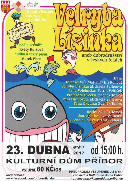 Příbor 23. 4. 2017 od 15:00 VELRYBA LÍZINKA ANEB DOBRODRUŽSTVÍ V ČESKÝCH ŘEKÁCH