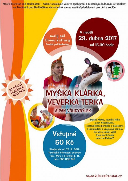 Frenštát pod Radhoštěm 23. 4. 2017 od 15:30 POHÁDKOVÁ NEDĚLE – MYŠKA KLÁRKA, VEVERKA TERKA A PAN VŠUDYBÝLEK
