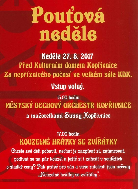 Kopřivnice 27. 8. 2017 od 15:00 POUŤOVÁ NEDĚLE