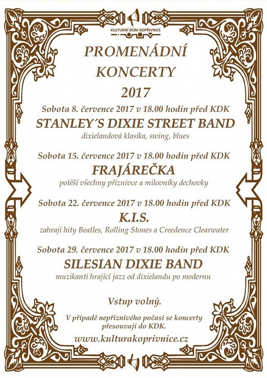 Frýdek Místek 28. 7. 2017 od 15:00 – 30. 7. 2017 JAZZ VE MĚSTĚ / JAZZ V ULICÍCH
