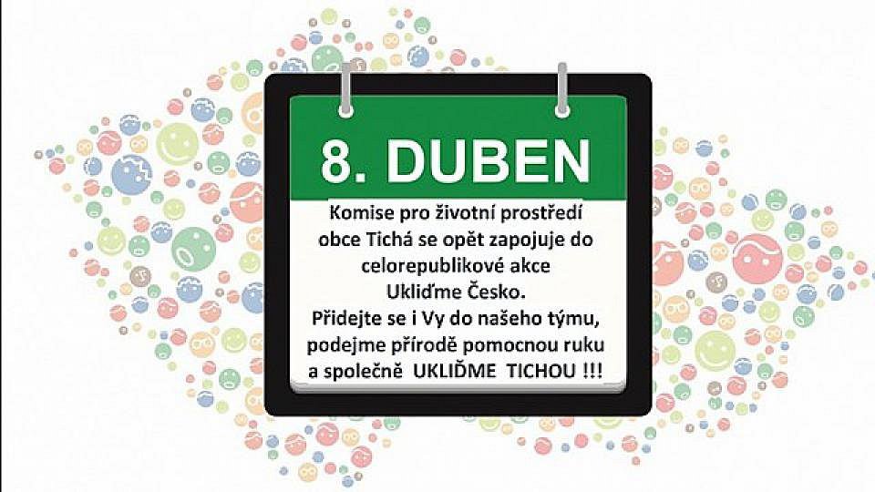 Komise pro životní prostředí obce Tichá se opět zapojuje do celorepublikové akce Ukliďme Česko. Přidejte se i Vy do našeho týmu, podejme přírodě pomocnou ruku a společně UKLIĎME TICHOU !!!