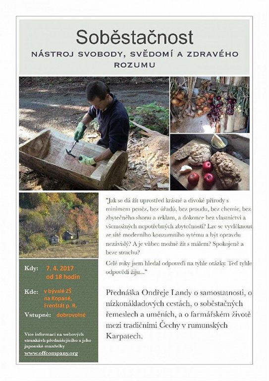 Frenštát pod Radhoštěm 7. 4. 2017 v 18:00 SOBĚSTAČNOST - NÁSTROJ SVOBODY, SVĚDOMÍ A ZDRAVÉHO ROZUMU