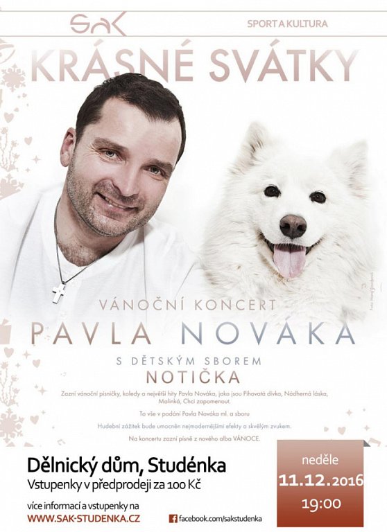 Studénka 11. 12. 2016 v 19:00 VÁNOČNÍ KONCERT PAVLA NOVÁKA