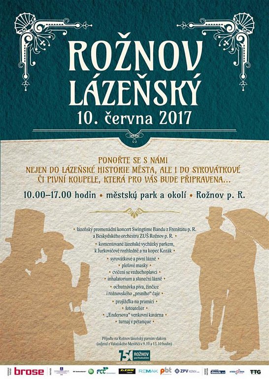 Jednodenní program zaměřený na lázeňskou historii Rožnova. Město Rožnov bylo v letech 1796 až 1939 světově proslulé díky klimatickým lázním, ve kterých se léčilo žinčicí a terénními vycházkami, později pak koupelemi a elektroléčbou. Program, který se bude odehrávat na mnoha místech města, má za cíl oživit lázeňskou historii Rožnova, kdy městem korzovali návštěvníci lázní, vyhrávaly zde kapely a lidé ochutnávali žinčici a syrovátku.