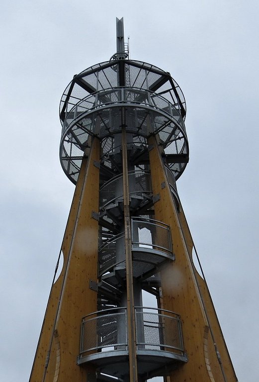 Der konische Turm ist aus Stahl und Holz gefertigt. Seine Aussichtsplattform befindet sich 15 Meter über dem Boden und ist über eine Spindeltreppe zu erreichen.