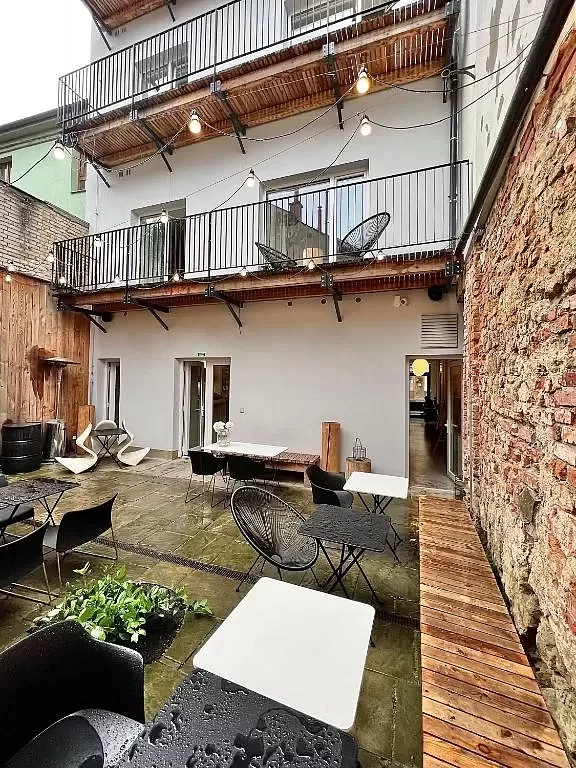 Historický dům prošel designovou rekonstrukcí, vzniklo 6 boutiqových apartmánů a kavárnou v přízemí. Rodinný hotel kde voní káva a koláče z naší cukrářské dílny, kde na snídani můžete v bačkorách a můžete ochutnat prémiová prosecca.