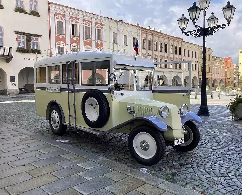 Następnie wyruszysz na komentowaną przejażdżkę zabytkowym autobusem marki TATRA z 1929 roku. Trasa koncentruje się przede wszystkim na zabytkach techniki w Nowym Jiczynie.